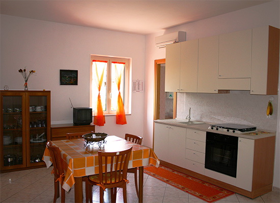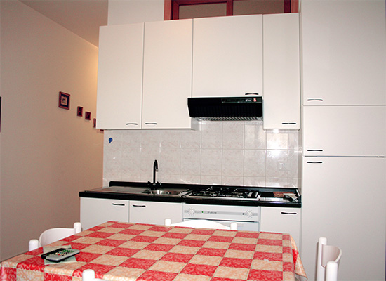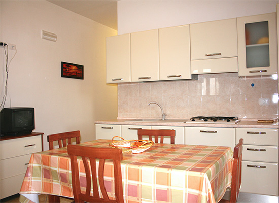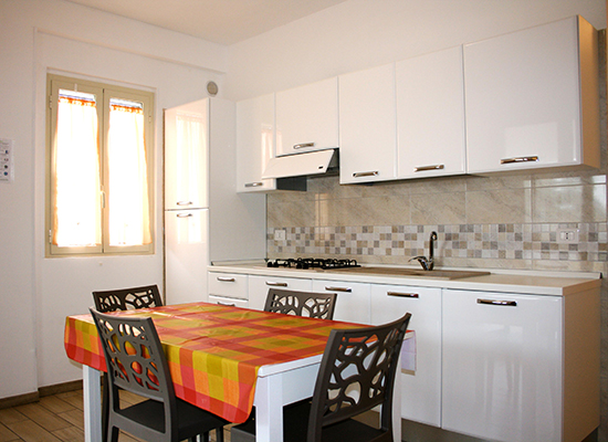 L’appartamento è composto da: soggiorno con angolo cottura con frigo congelatore e stoviglie, camera matrimoniale, cameretta con 2 letti singoli (a richiesta si possono unire), bagno con box doccia, ampia veranda esterna con tavolo e sedie.